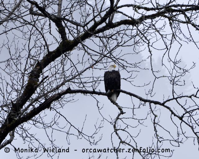 For the second half of the trip, the eagle numbers started to really pick up. Some of the eagles were lower down, providing some better photographing opporunities. It was especially cool when a bird was perched on a branch overhanging the river and we were able to drift right under it, giving us a unique angle as we looked straight up at the eagle: