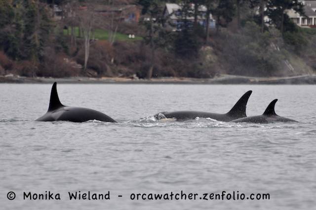 I ended up being outside for seven hours, and while I didn't feel it while I was with the whales (you never do) I was frozen to my core and very hungry! I also hadn't gotten anything done I was supposed to during the day. Was it worth it? Hands down, you bet! Not only was a great pick-me-up to hang out with the whales all day, it was great to catch up with all the local whale watchers, too. Everyone seemed to come out of the woodwork to enjoy this special winter visit from the Southern Residents. So nice of them to come see us on a Saturday!